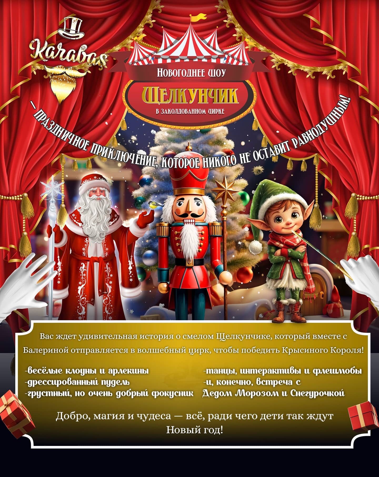 Вас ждет удивительная история о смелом Щелкунчике, который вместе с эльфом отправляется в волшебный цирк, чтобы победить Крысиного Короля! ?✨